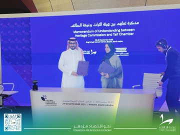 غرفة الطائف ممثلة في نائب رئيس الغرفة عبدالعزيز البار توقّع مذكرة تفاهم مع هيئة التراث .. شملت الاتفاقية على التعاون بين الطرفين في العديد من المبادرات، والتفاهم حول تفعيل التعاون في إقامة فعاليات لهيئة التراث، إلى جانب بحث مشاركة الطرفين في أعمال التوعية المجتمعية .