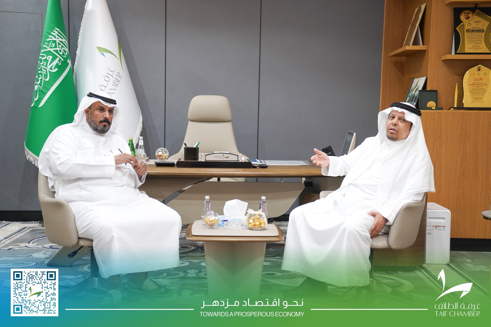 رئيس غرفة الطائف غازي القثامي يلتقي مدير مطار الطائف الدولي فهد العصيمي والفريق المرافق .. بحضور عدد من أعضاء مجلس الادارة، وأمين عام الغرفة .. بحث اللقاء آلية التعاون بين الغرفة والمطار بما يعزز تنمية الاقتصاد بالطائف كما تناول اللقاء عرض لأهم الوجهات المحليّة والدوليّة بمطار الطائف.