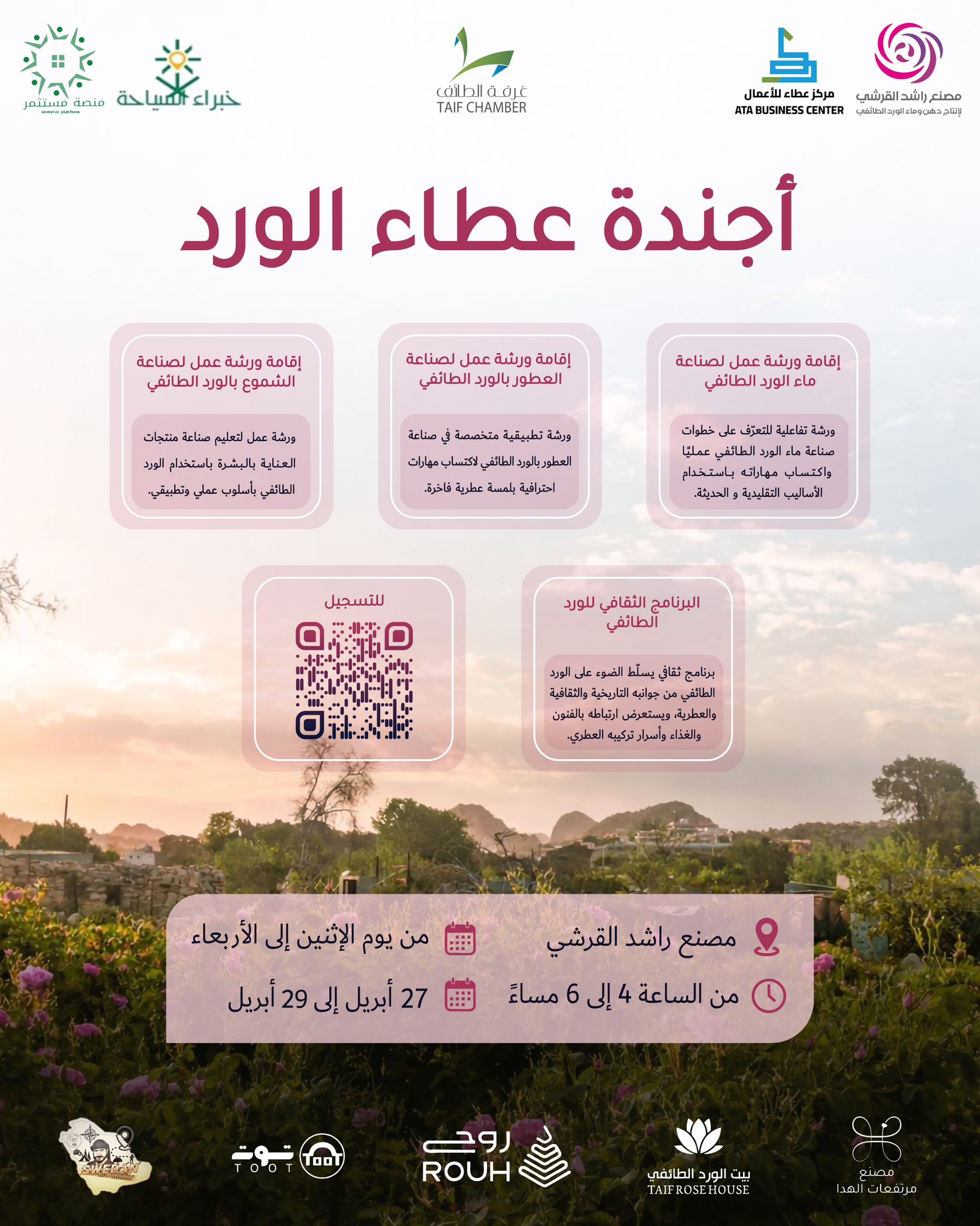 حيث يلتقي عبق الورد الطائفي بعطاء الإنسان… لتُصنع تجربة دافئة تحمل الجمال والمعرفة والأثر.
